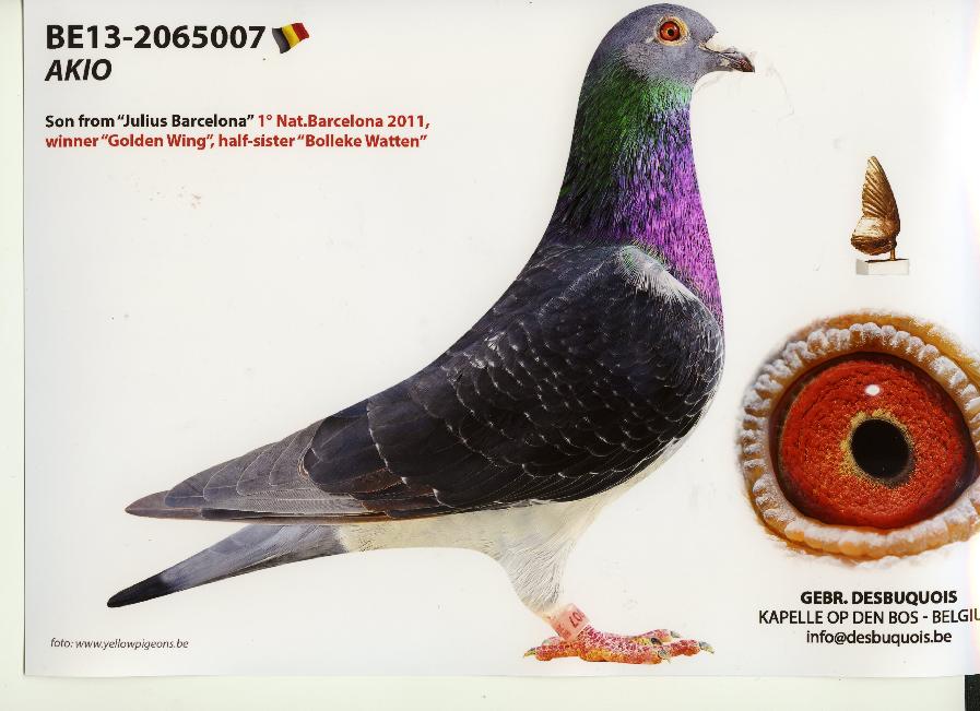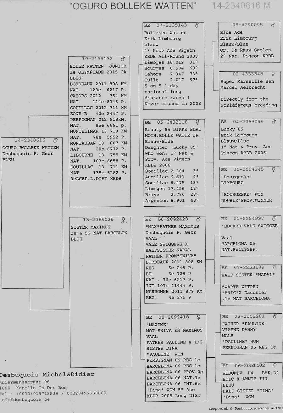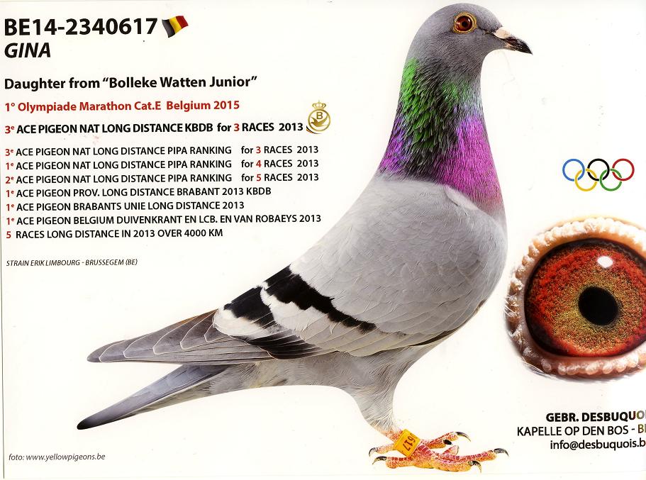 | 上写真はオリンピヤード代表鳩”Bolleke Watten Junior" |