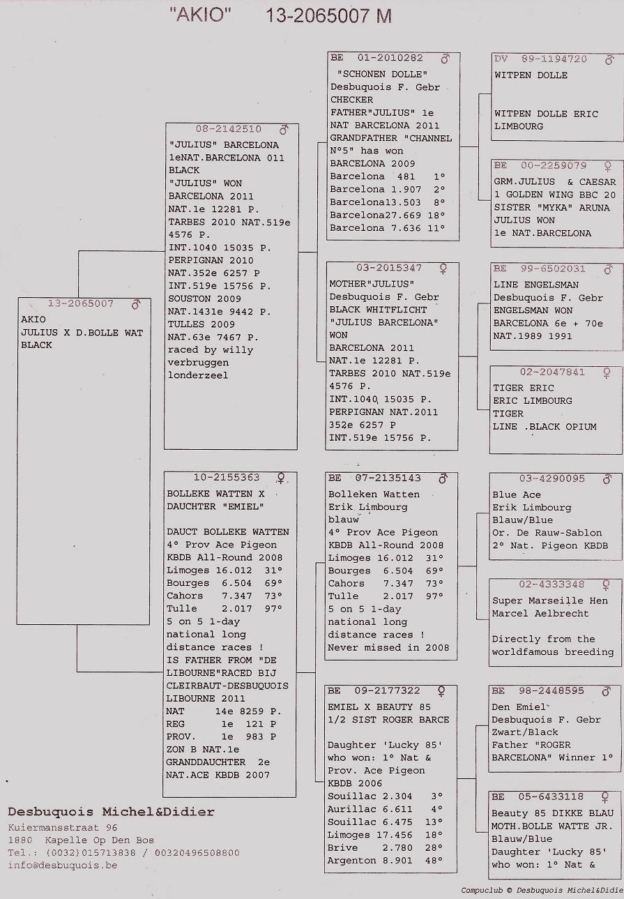 | 上写真はバルセロナN12170羽中優勝鳩”Julius” |