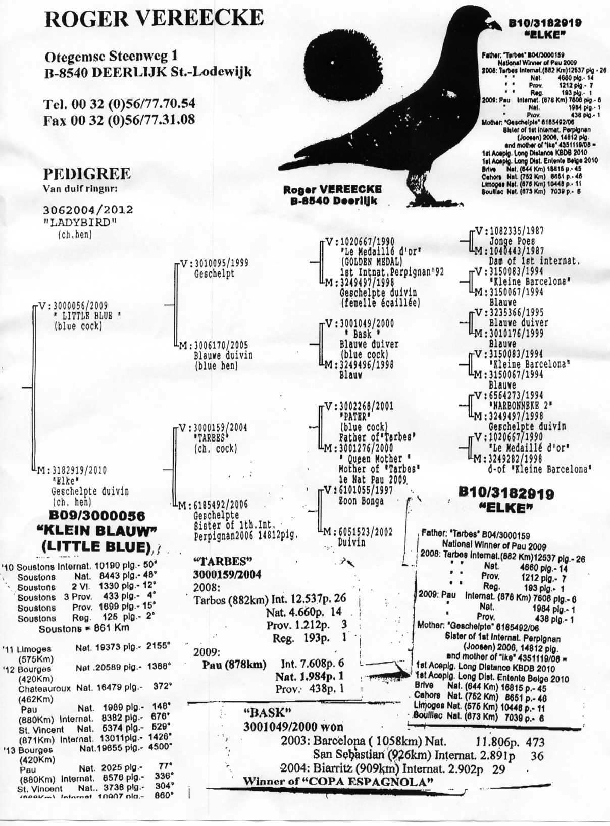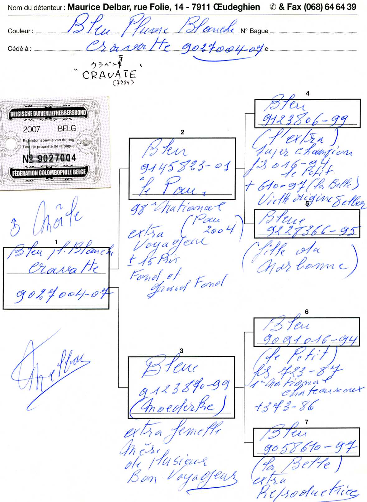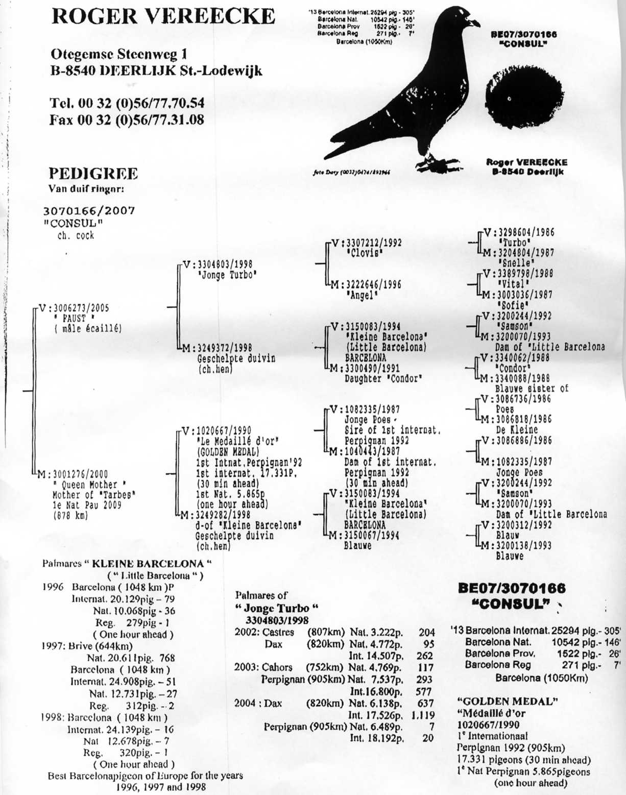 | ”コンソール号”B07-3070166 バルセロナIN25294羽中305位 バルセロナN10542羽中146位 |