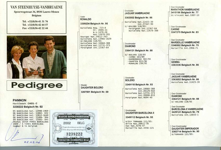 P・ファンブリアーナ鳩舎”銘鳩パノン号”